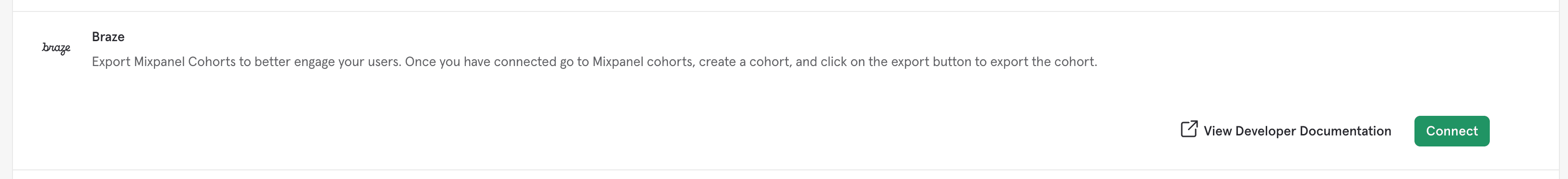 You can export events from your Braze integration to Mixpanel to perform deeper analysis. For detailed instructions on how to do this, please refer to Braze’s Technology Partner’s documentation (opens in a new tab).