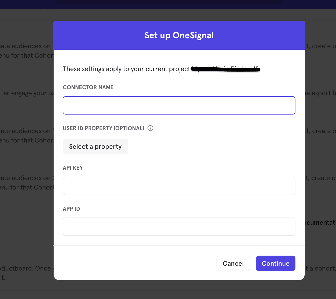 - You will need to provide two credentials to authorize the connection: API Key and App ID. You can find these values in your OneSignal settings page. The OneSignal integration will show a Connected tag in the UI once the connection succeeds.